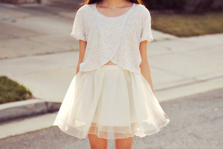 Dressing in only one color is one of my favorite things to do because you can combine separate pieces in your closet and make them look like a cohesive unit. I combined this crop top, long cardigan, and tulle skirt to make this dressy ensemble that almost looks like a dress from far away :) Thank you to Lucca Couture for letting me pick out this beautiful top and necklace! If you would like to win this shirt, or any of my other L.C.t. picks from Lucca Couture, remember to enter my giveaway here!